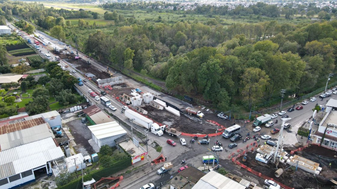 El secretario de Comunicaciones y Obras Públicas, Rogelio Zarazúa Sánchez, compartió que ya se concluyeron los trabajos de reubicación del gasoducto que atravesaba la zona para continuar con la perforación y estabilización de suelos con sistema Geopier, que consiste en sustituir terreno con mejores materiales para garantizar una cimentación segura y durable.