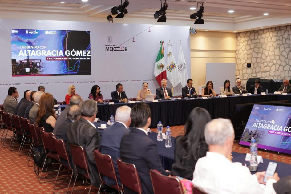 Morelia, Michoacán, 16 de mayo de 2025.- El gobernador Alfredo Ramírez Bedolla y cámaras empresariales y de industriales y el sector productivo de la agroexportación impulsarán ante la federación el polo de desarrollo para el Bienestar en Morelia, con ubicación en el Parque Bajío.