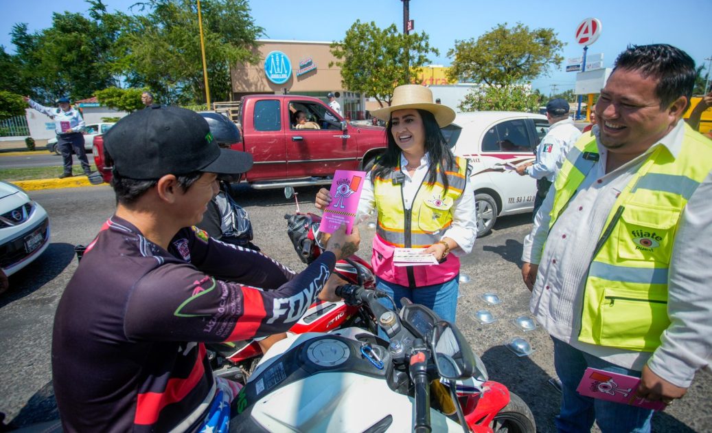 Lázaro Cárdenas, Michoacán, 17 de julio del 2025.- La campaña vial ¡Fíjate Pues! llegó a Lázaro Cárdenas, a través de la secretaria de Desarrollo Urbano y Movilidad, Gladyz Butanda Macías, con la intención de promover el uso correcto del casco al viajar en motocicleta por el municipio costero.