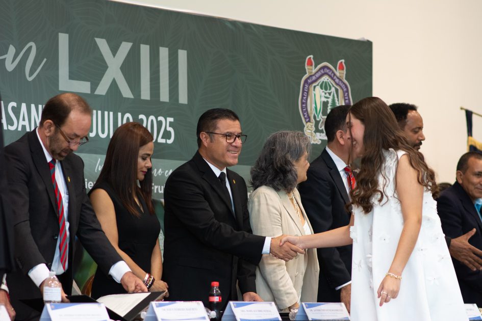 Hoy, dijo, se gradúan profesionistas preparados, pero también seres humanos con una clara vocación de servicio a su comunidad, a su tierra y al entorno natural que tanto necesita ser protegido y transformado con responsabilidad.