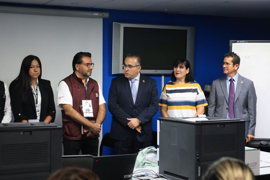 A nombre de la rectora de la Universidad Michoacana de San Nicolás de Hidalgo (UMSNH), Yarabí Ávila González, el tesorero de la casa de estudios, Enrique Eduardo Román García, dio la bienvenida al personal del SAT que estará laborando en dicho módulo.